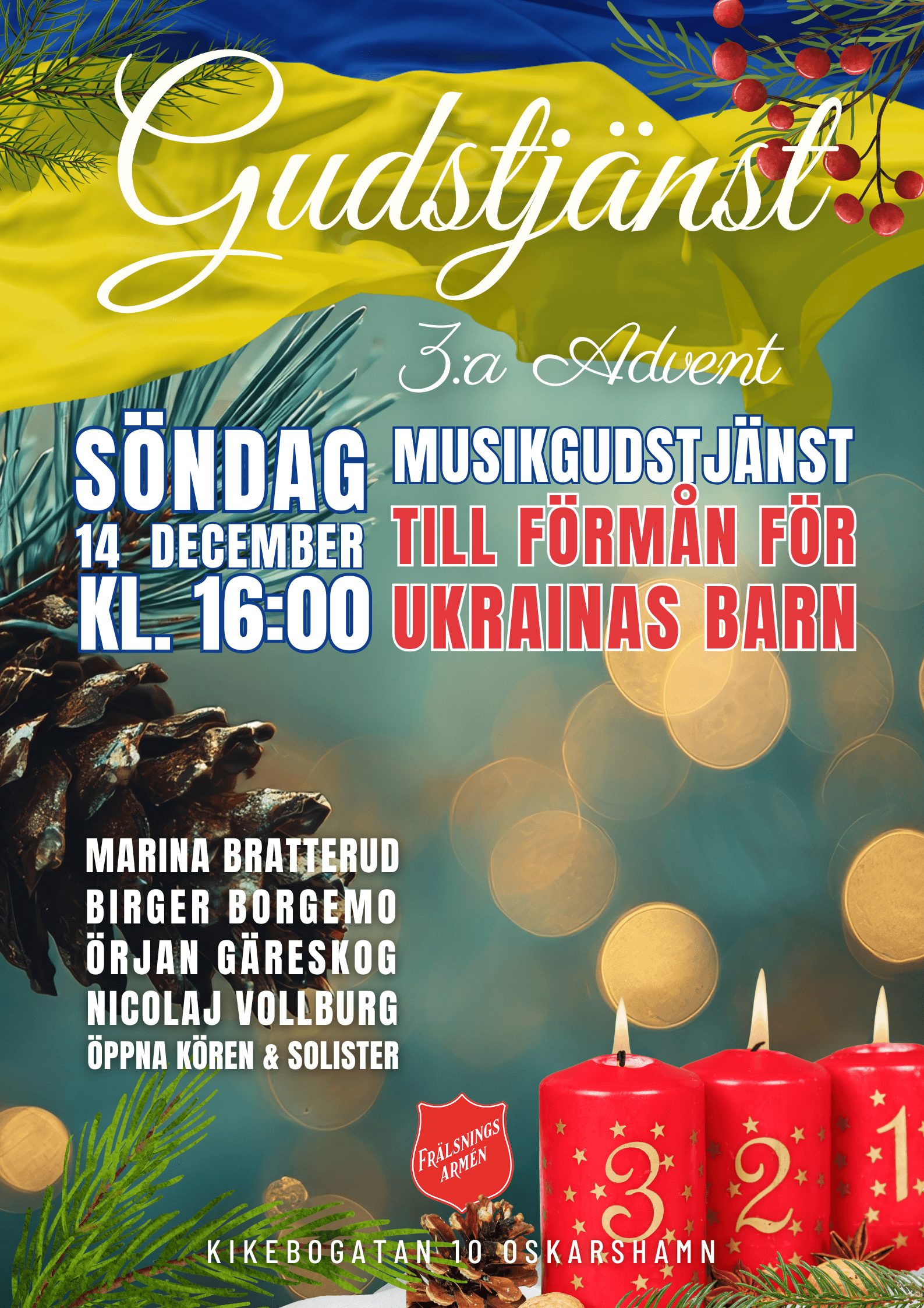 Välkommen till Gudstjänst 3:e Advent Söndag 14 december kl 16:00 Öppna kören & solister Insamling till Ukrainas Barn