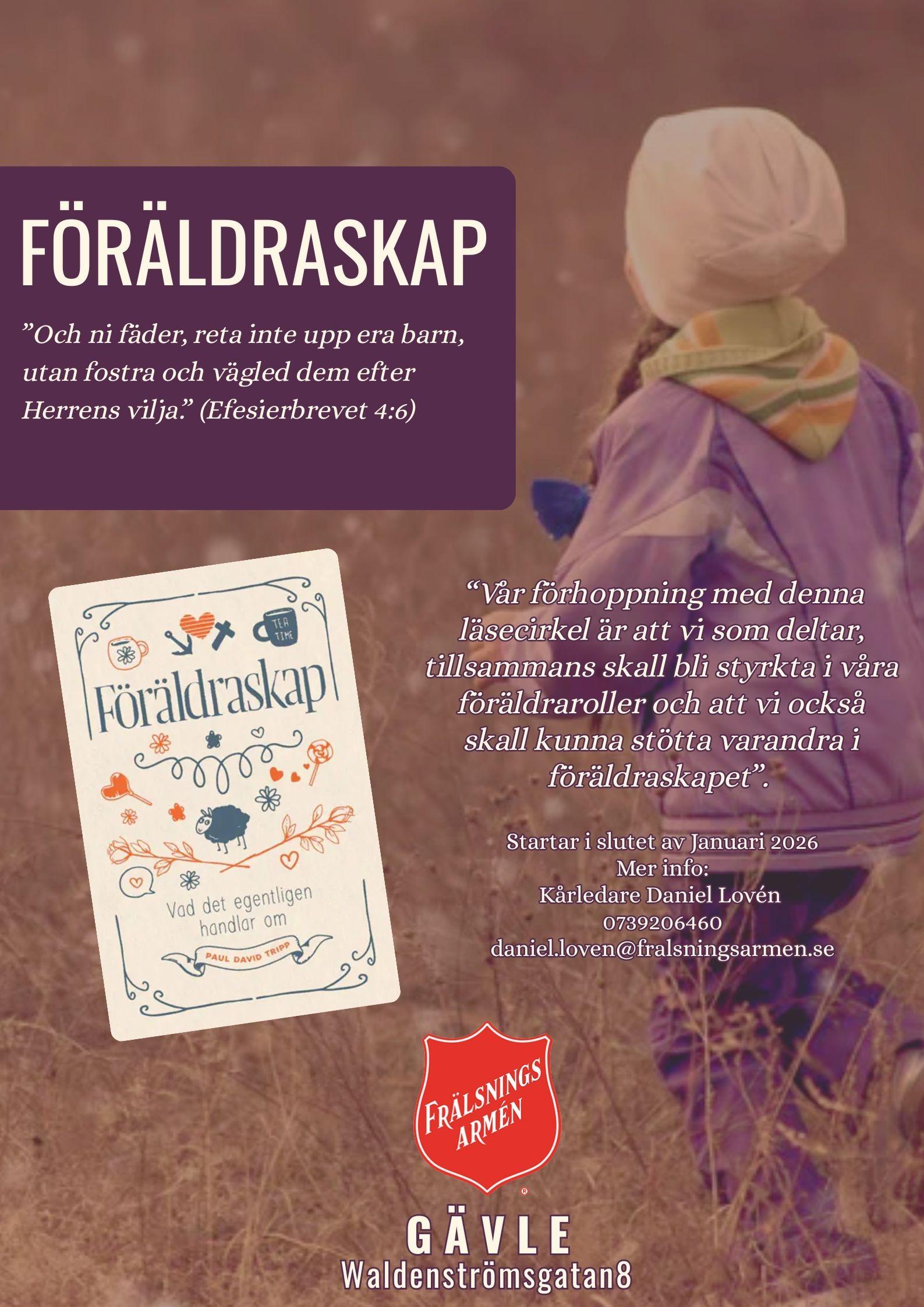 Har du, som förälder, läst denna vers och funderat över vad ett föräldraskap efter Guds vilja innebär och hur du skall förverkliga det i ditt och dina barns liv? Vi vill bjuda in dig till en läsecirkel på temat föräldraskap utifrån