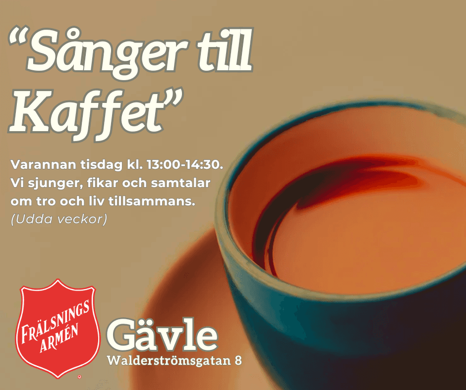 Välkommen till "Sånger till kaffet". Vi samtalar om tro och liv, sjunger om Jesus, ber tillsammans och delar vittnesbörd och har en härlig gemenskap vid fikaborden.