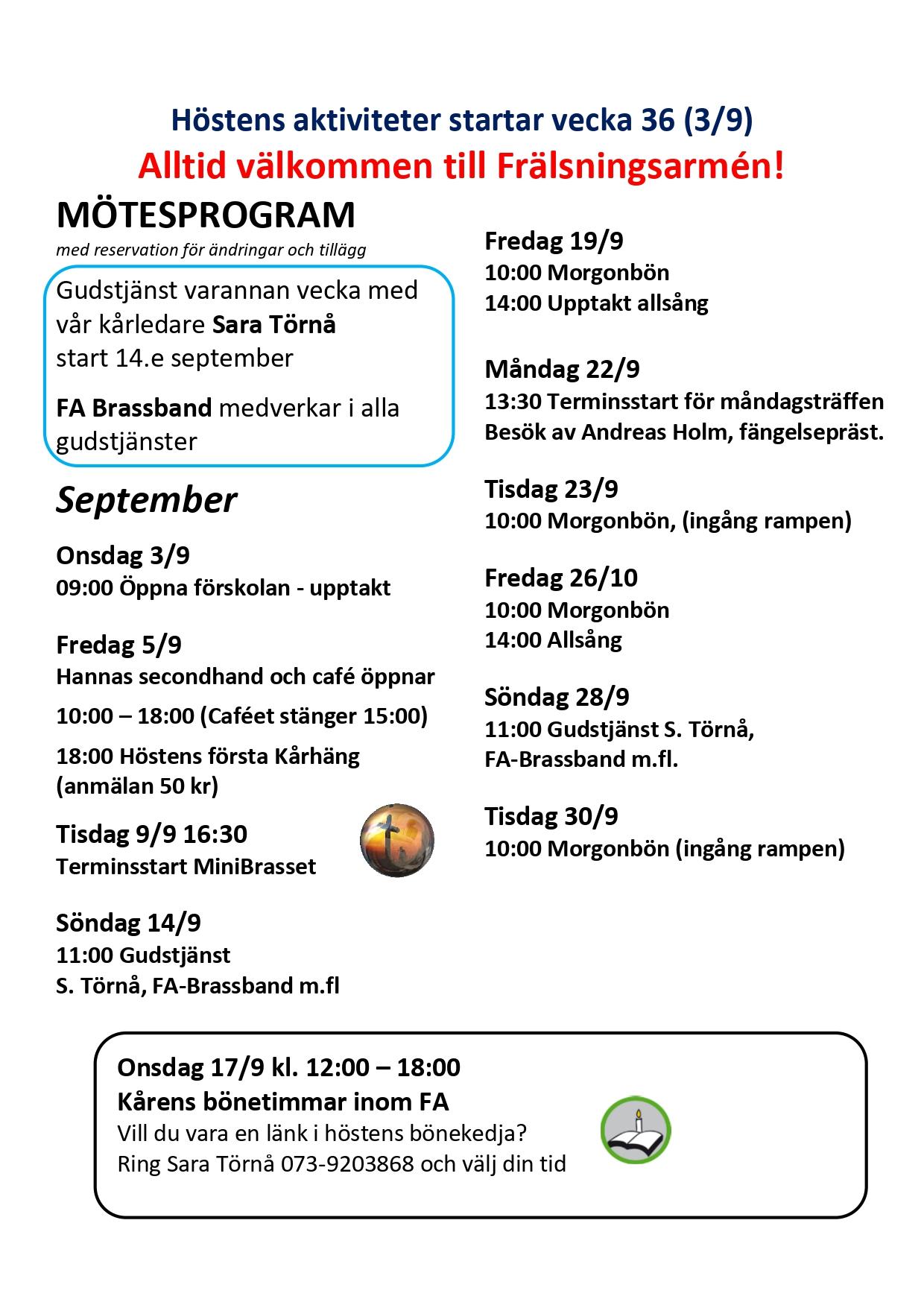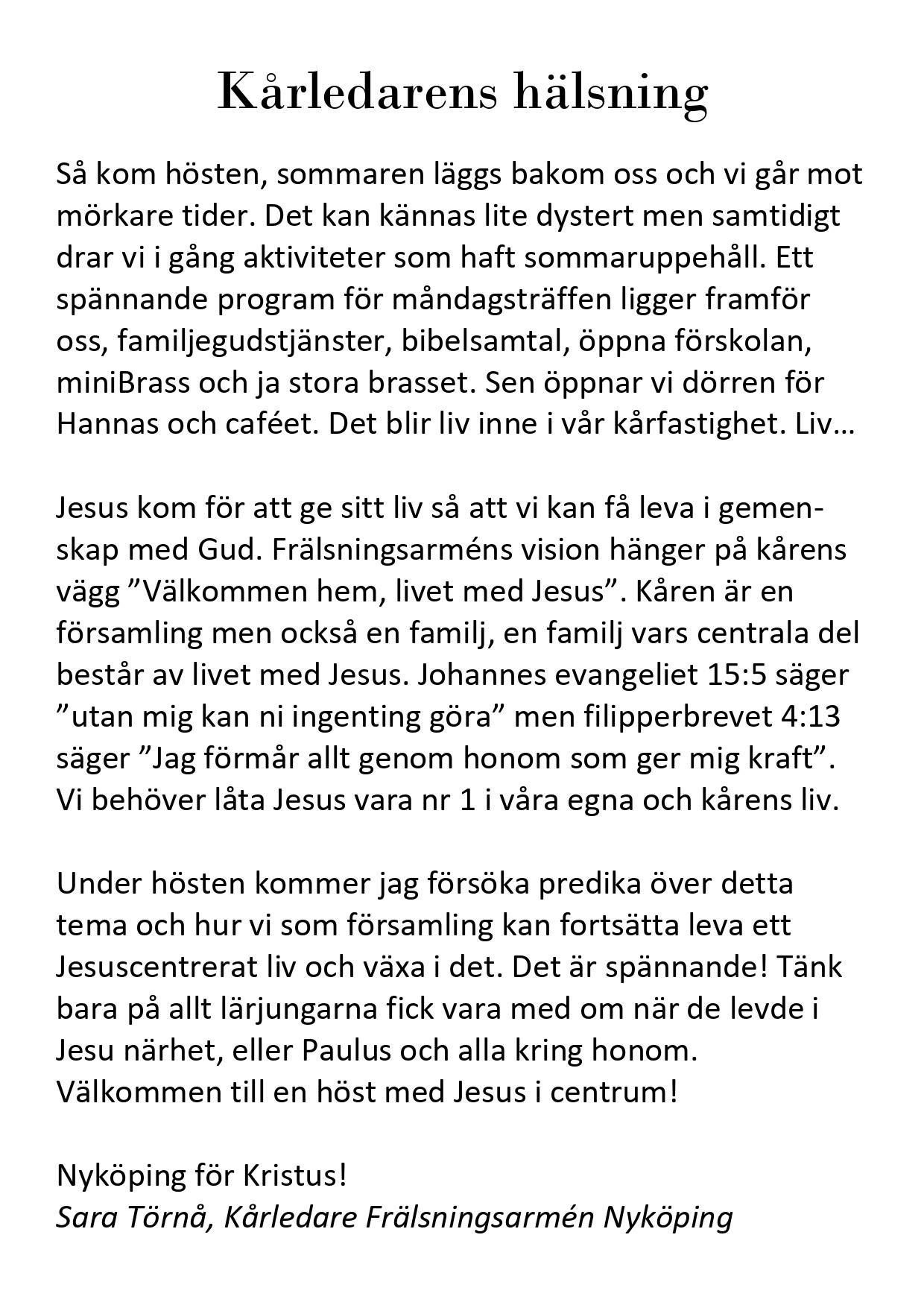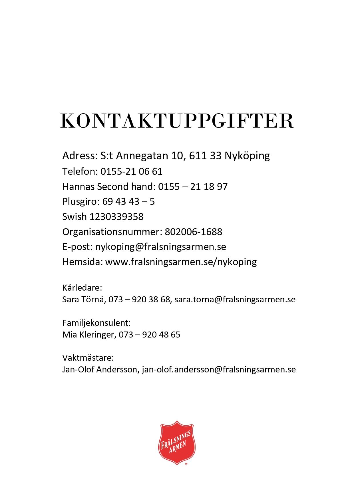 Här hittar du information om verksamheten på Frälsningsarmén i Nyköping.
