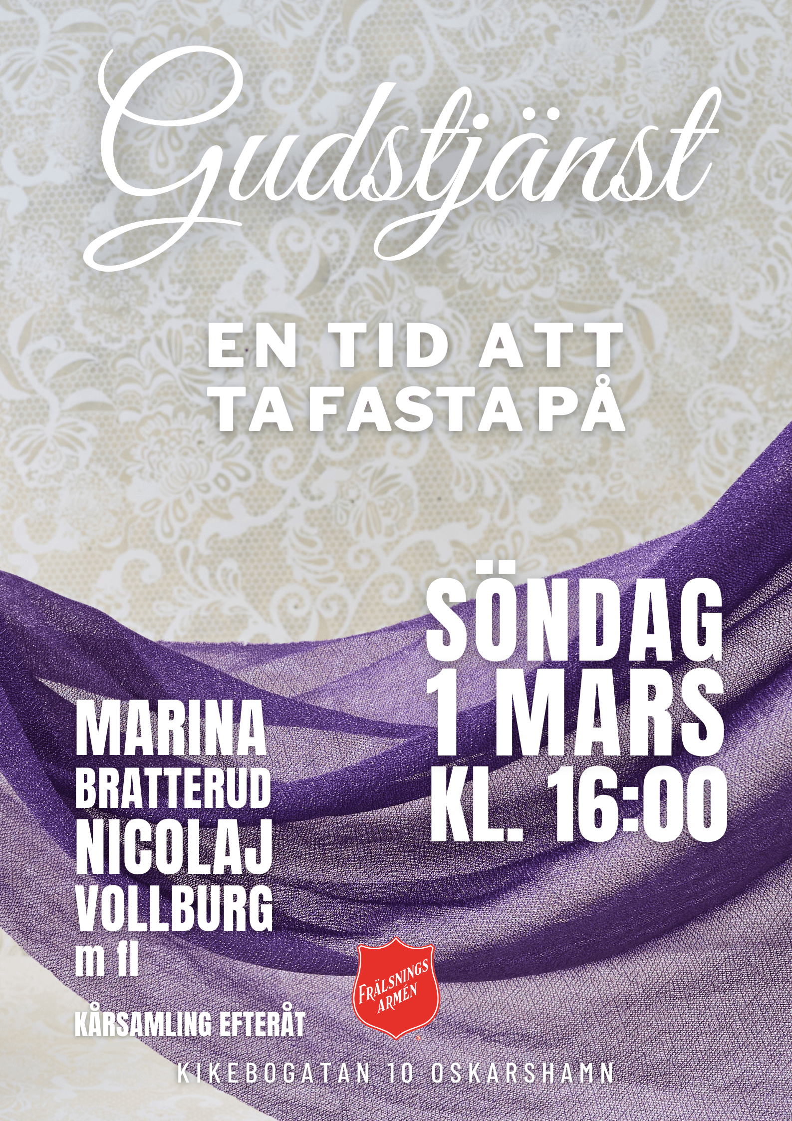 Välkommen till Gudstjänst Söndag 22 februari februari kl 16:00 Monica Törnström, FA Brass, m fl