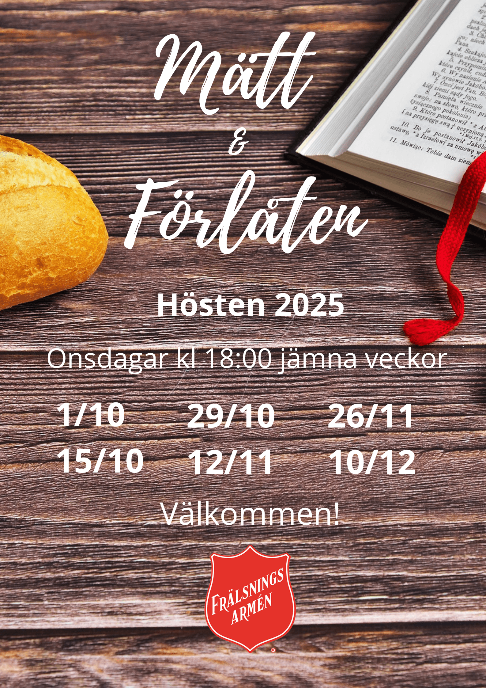 Välkommen till höstens första "Mätt & Förlåten" Onsdag 1 oktober 2025 kl 18:00