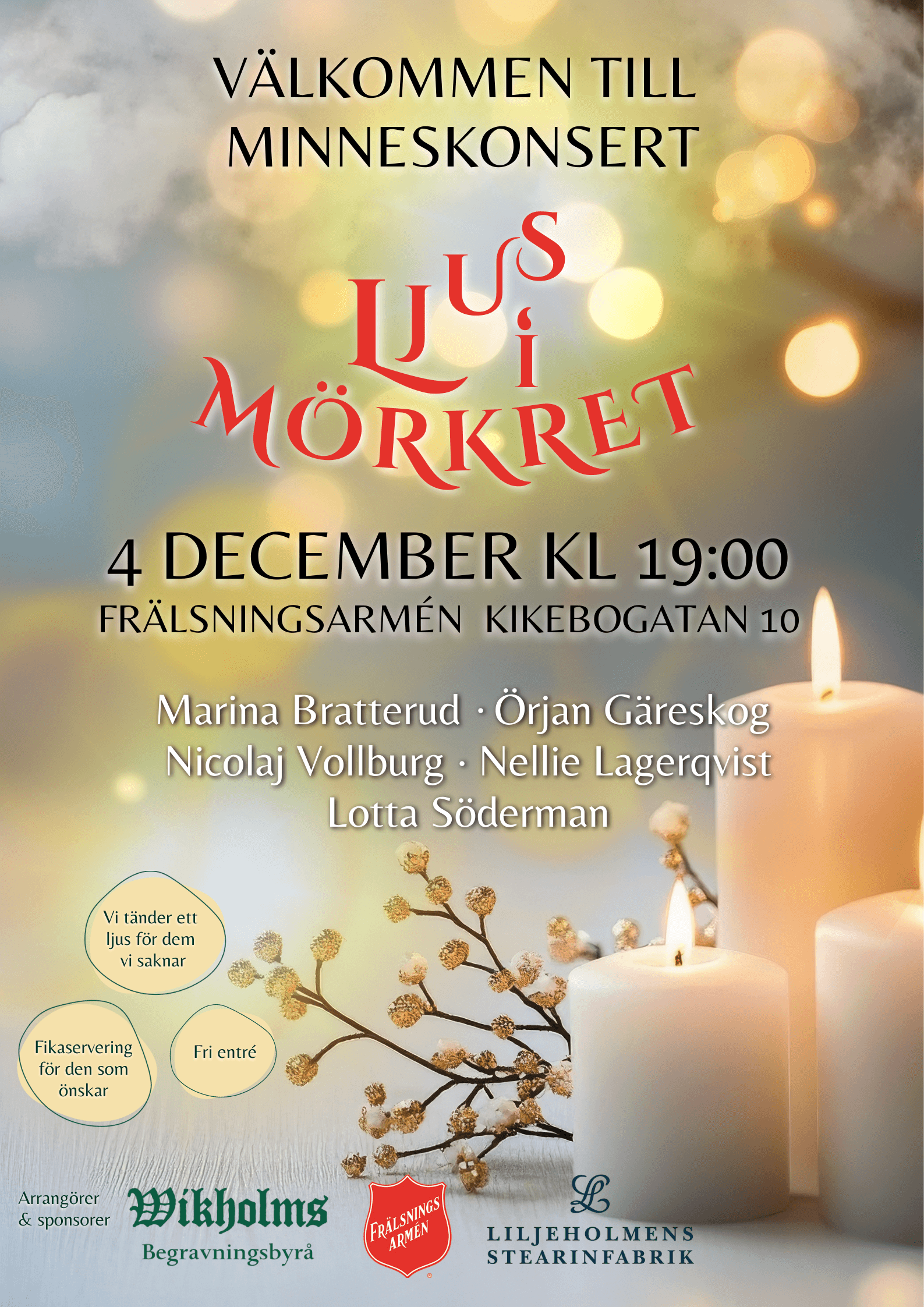 Välkommen till Månadens konsert!Varje månad inbjuder vi Dig till ett konserttillfälle där du får möta lokala och gästande musiker och sångare. Genom konserterna vill vi ge Dig en möjlighet att uppleva evangeliet gestaltat genom musik.Nästa konsert:Lördag 29 november kl 16:00Ensemble HineiniKONSERTEN ÄR INSTÄLLD PGA SJUKDOM Kommande konsert:27 december kl 16:00NYÅRSKONSERT