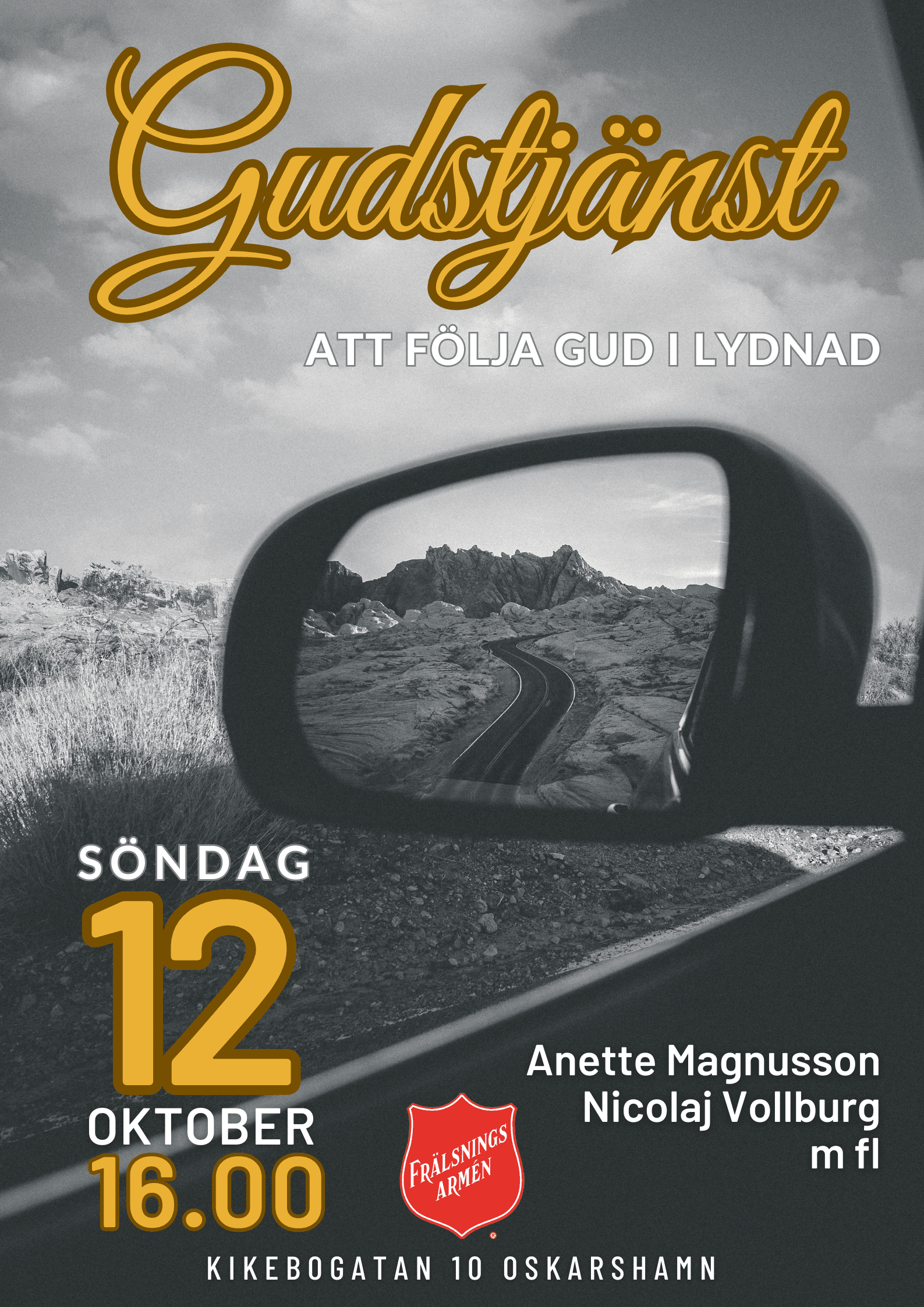 Välkommen till Gudstjänst Söndag 12 oktober kl 16:00 "Att följa Gud i lydnad" Anette Magnusson, Nicolaj Vollburg, m fl