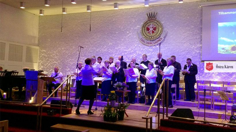 Våra stora framträdanden är: "Julen sjunges in", "tredje advent" och “Sommarsång i juni" . Du som gillar att sjunga andliga sånger är välkommen att vara med. Här frågar vi inte efter om du kan sjunga utan här räknas bara en önskan om att få sjunga. Välkommen!